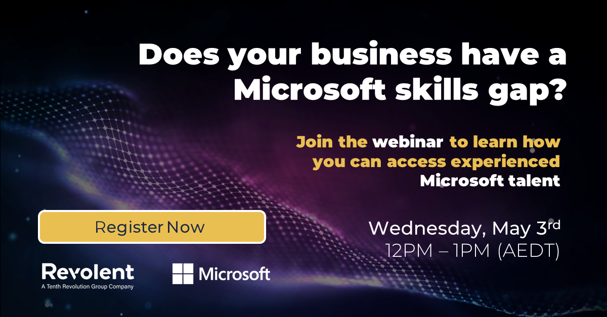 Are you interested in accessing net new, business-ready Microsoft professionals or upskilling your existing employees? As Revolent launches it's Microsoft talent offering in APAC, we're excited to co-host this webinar with Microsoft to help Microsoft Partners address their talent gaps. During the webinar, we will explore: - The Microsoft skills gap and growing demand for mid-level talent - Potential solutions to address the talent gap - Success stories